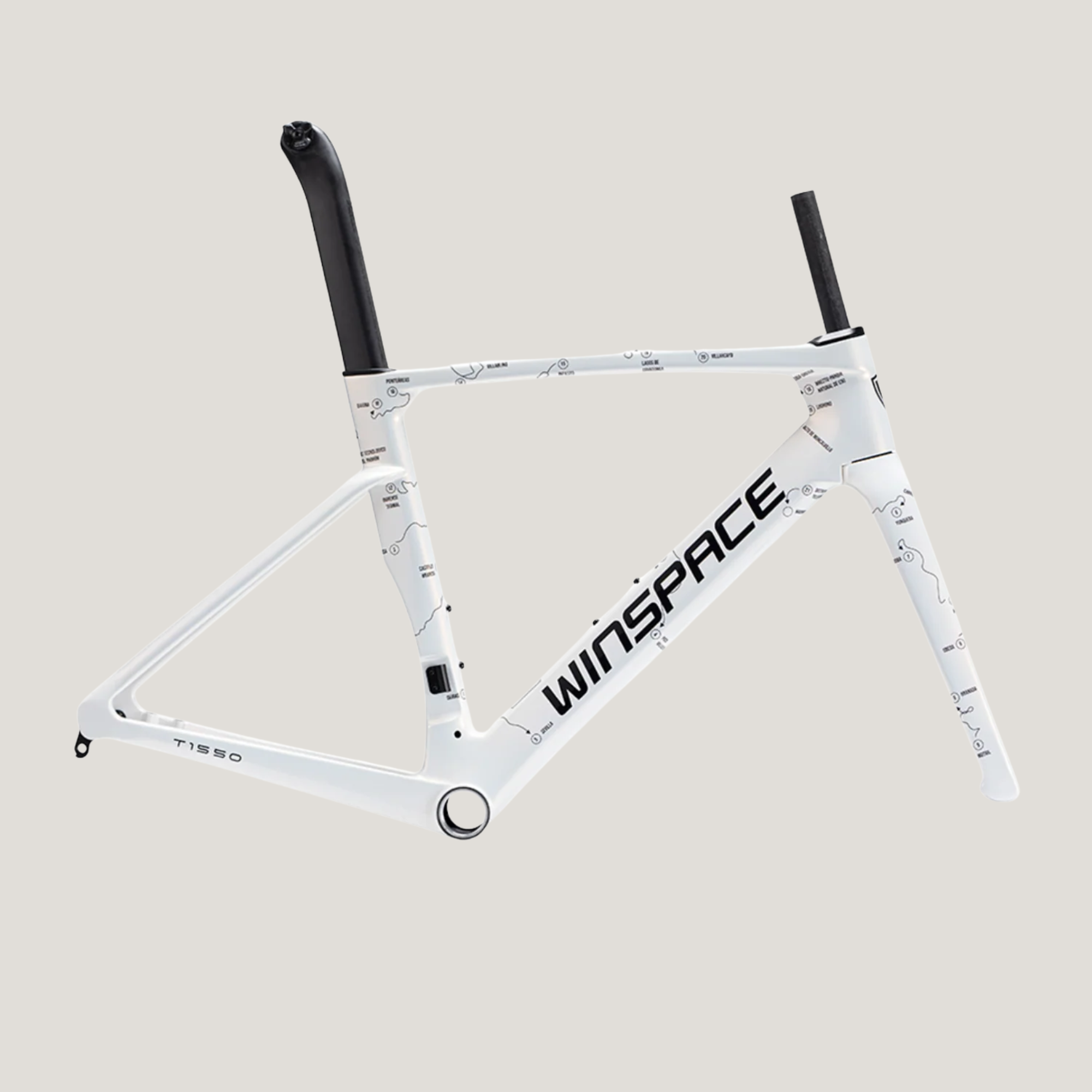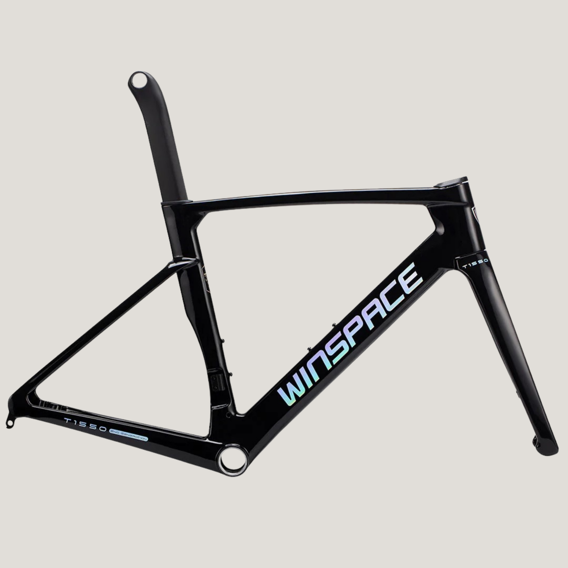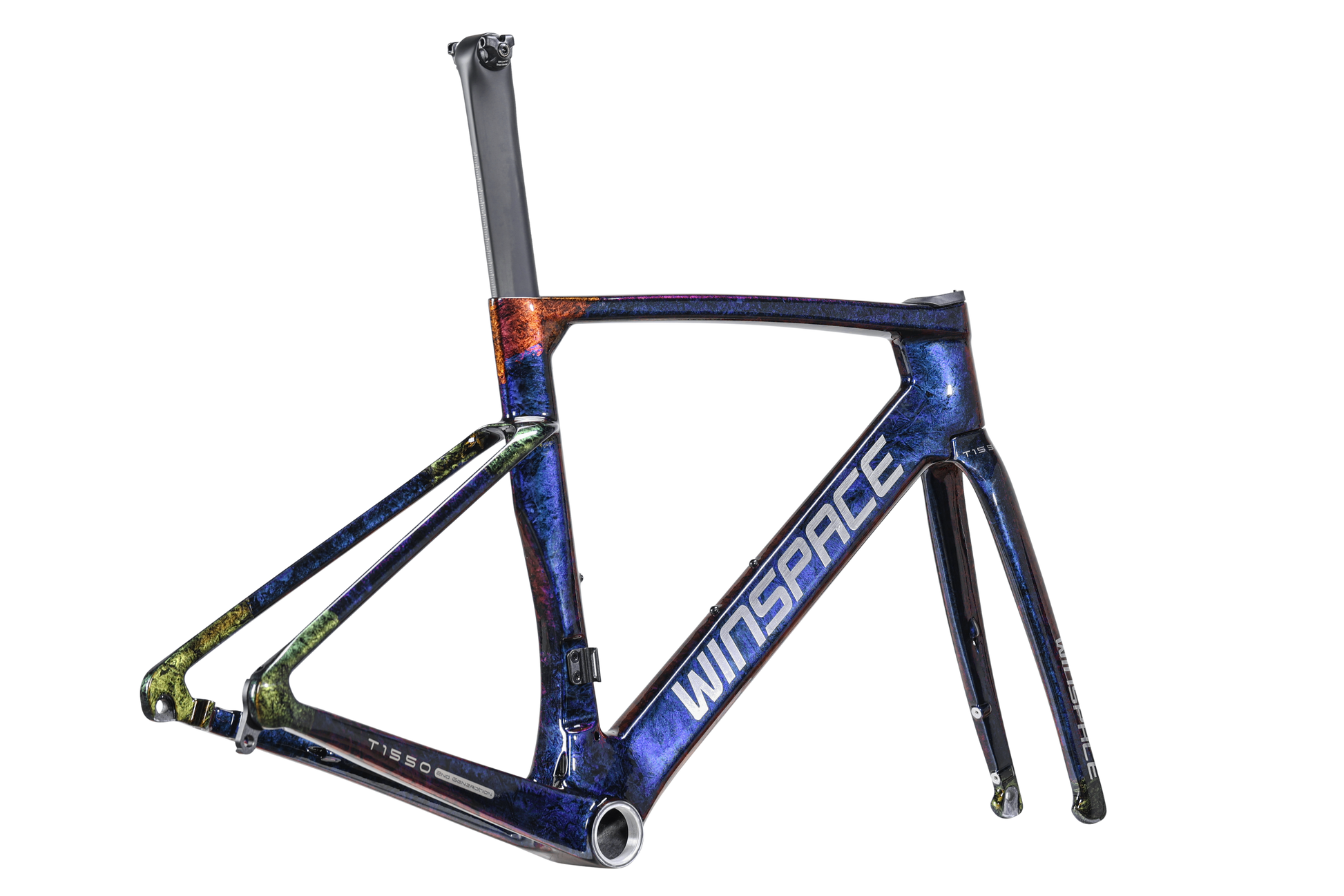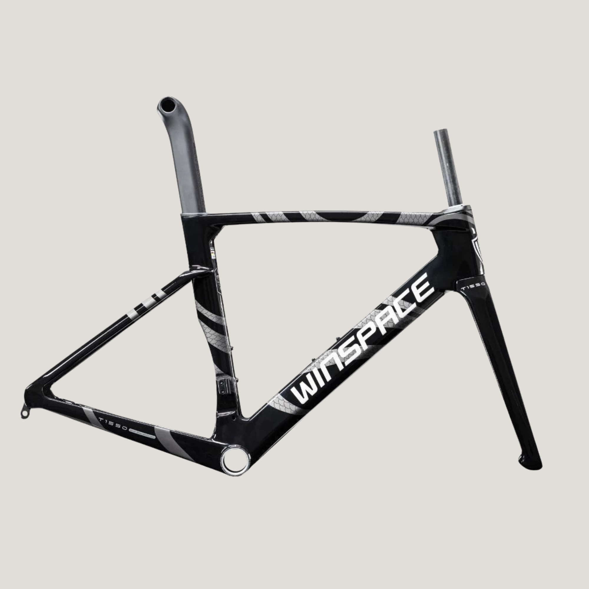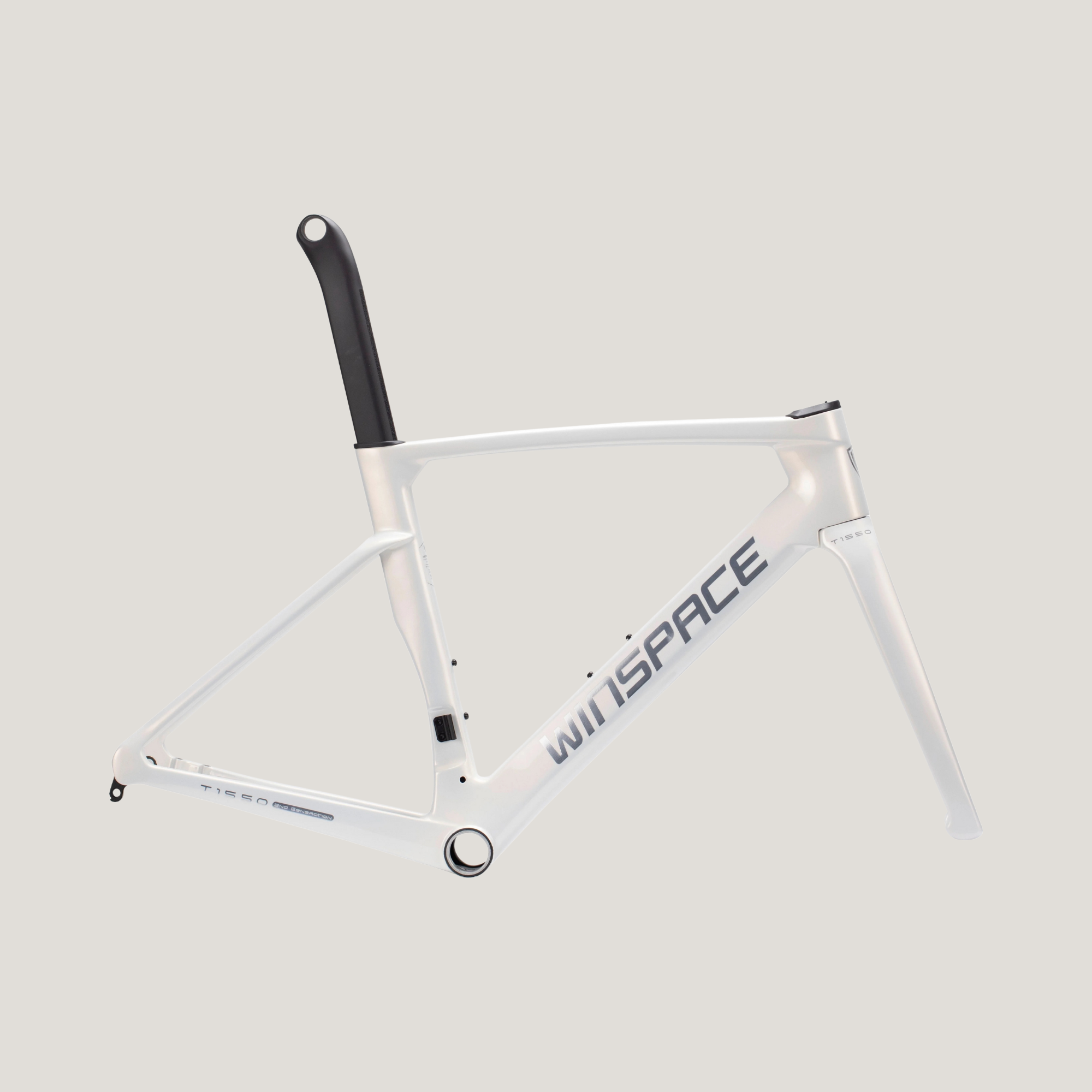 The Winspace T1550 2nd Gen. frameset features a T1000 + T800 carbon fiber One-Piece molding process, which ensures higher-quality stability and lightweight construction. This process also results in a seamless frame, allowing for more direct force transmission and a sturdier frame structure.