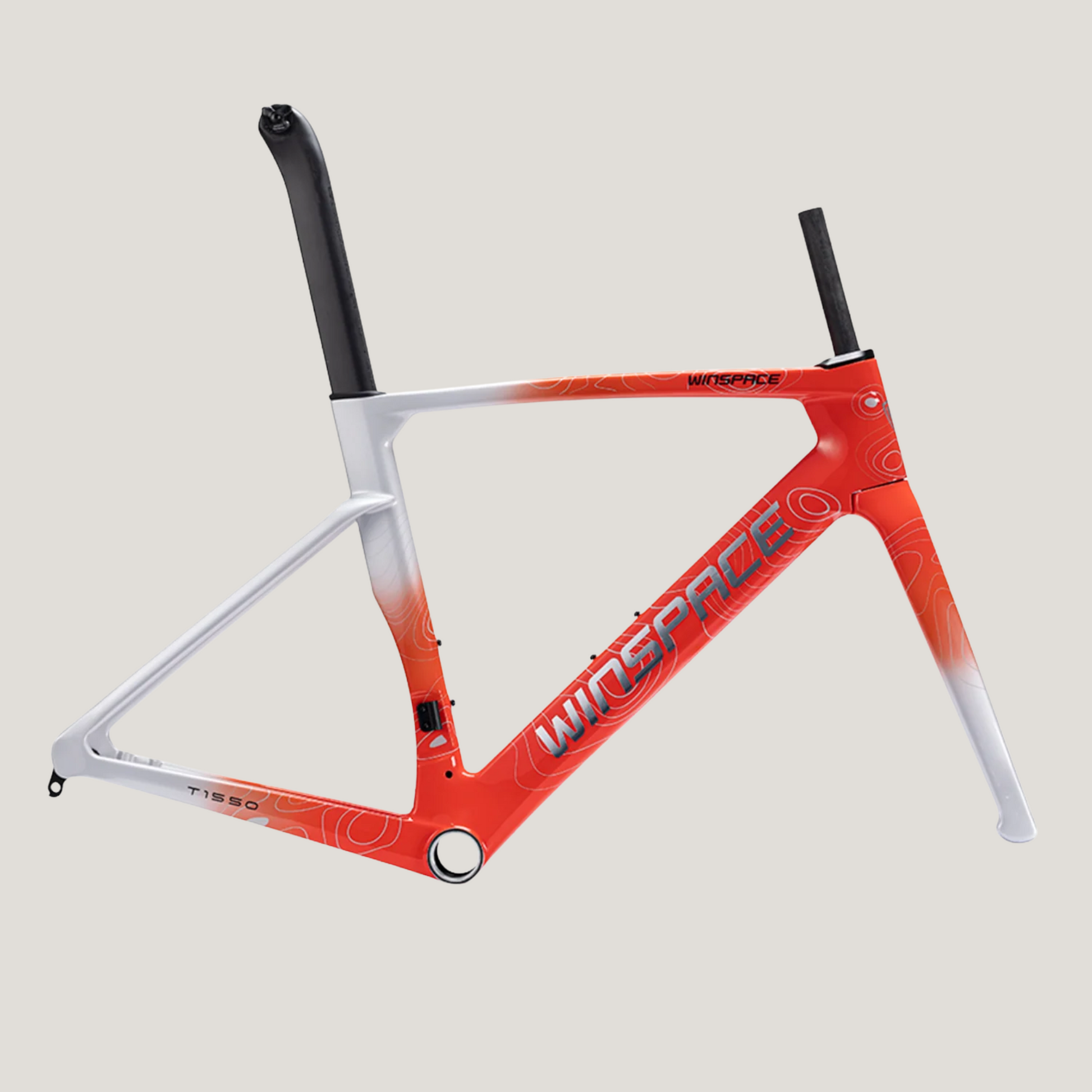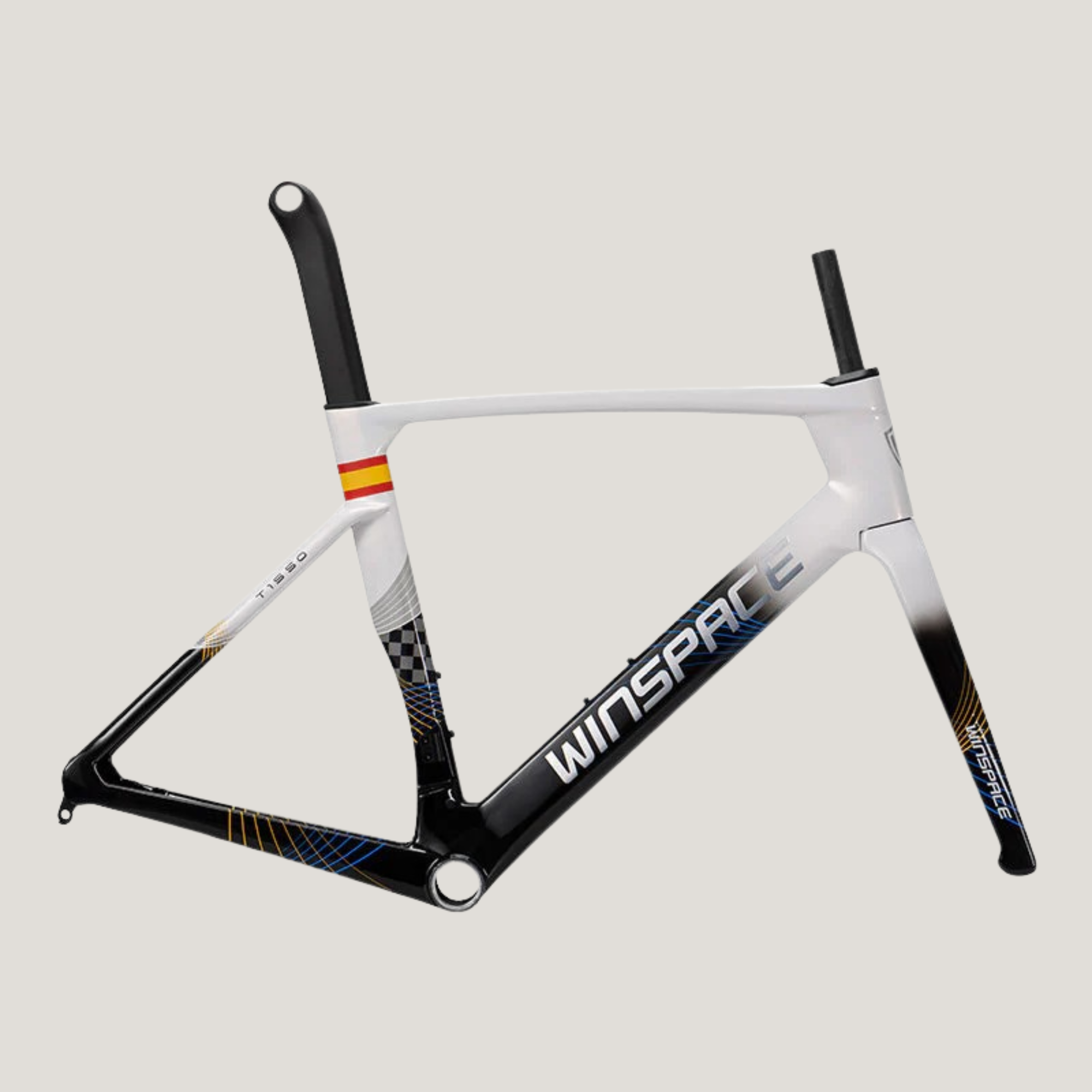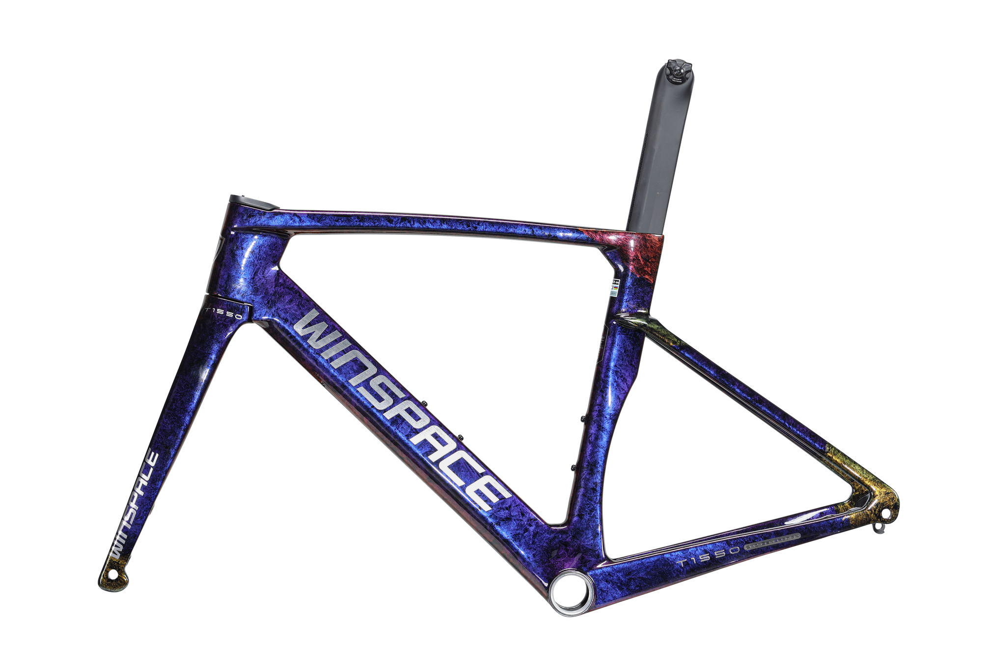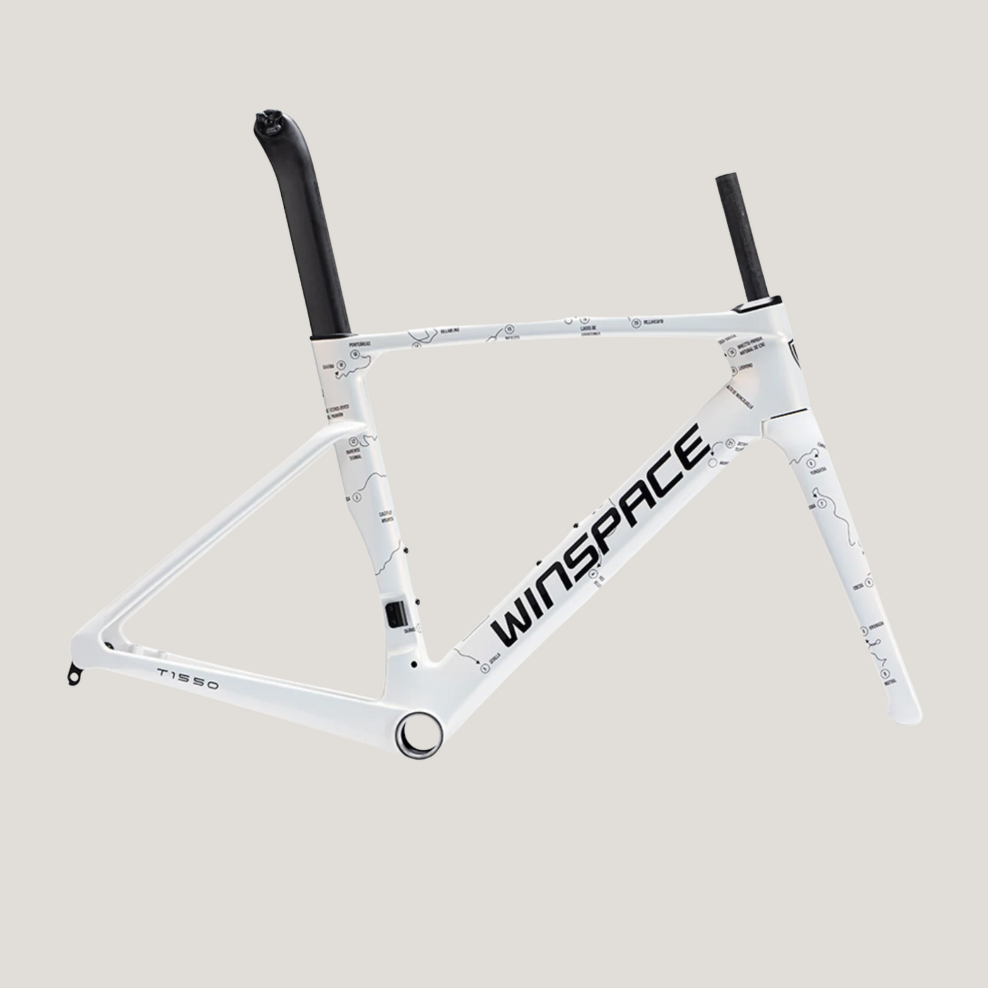 The Winspace T1550 2nd Gen. frameset features a T1000 + T800 carbon fiber One-Piece molding process, which ensures higher-quality stability and lightweight construction. This process also results in a seamless frame, allowing for more direct force transmission and a sturdier frame structure.