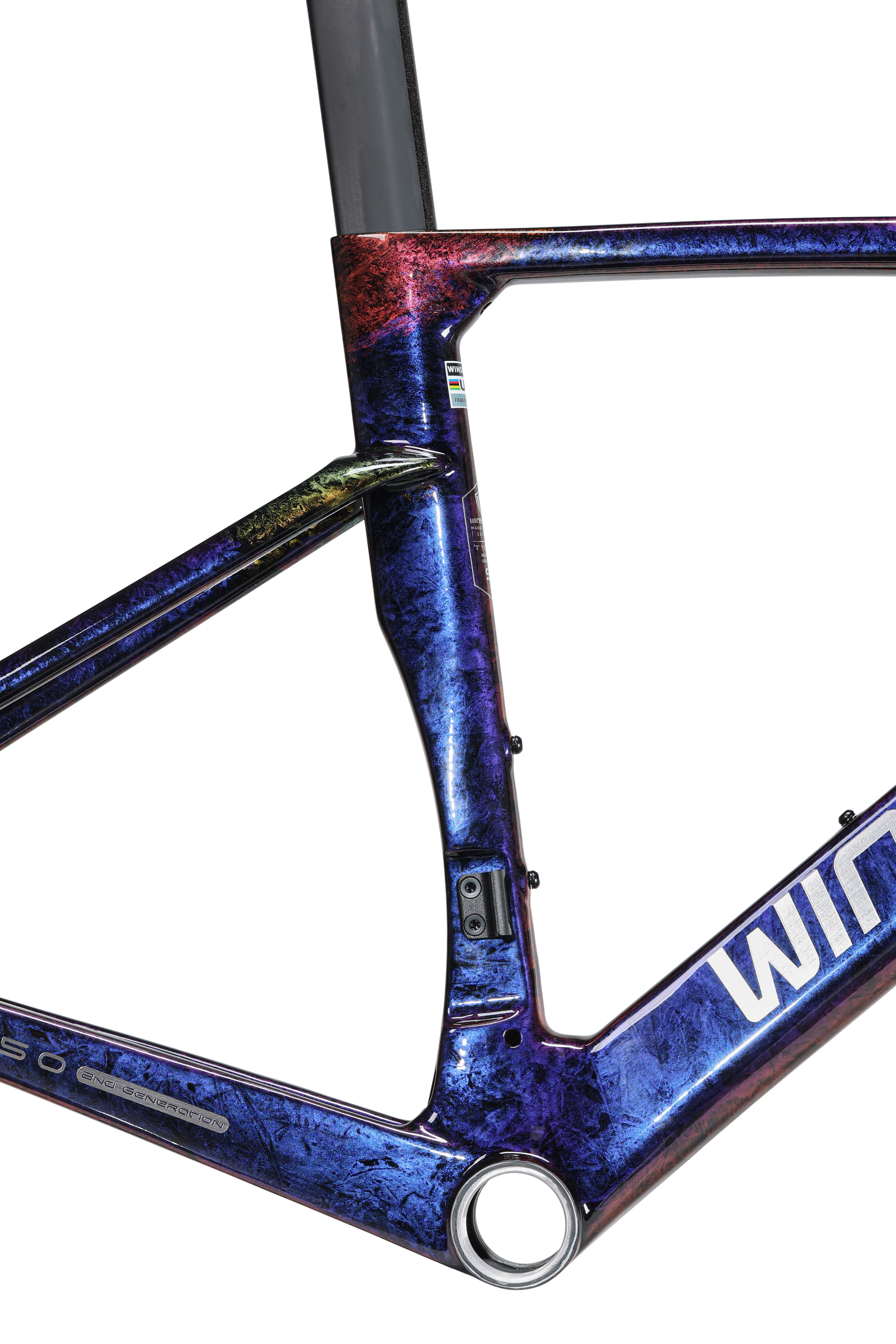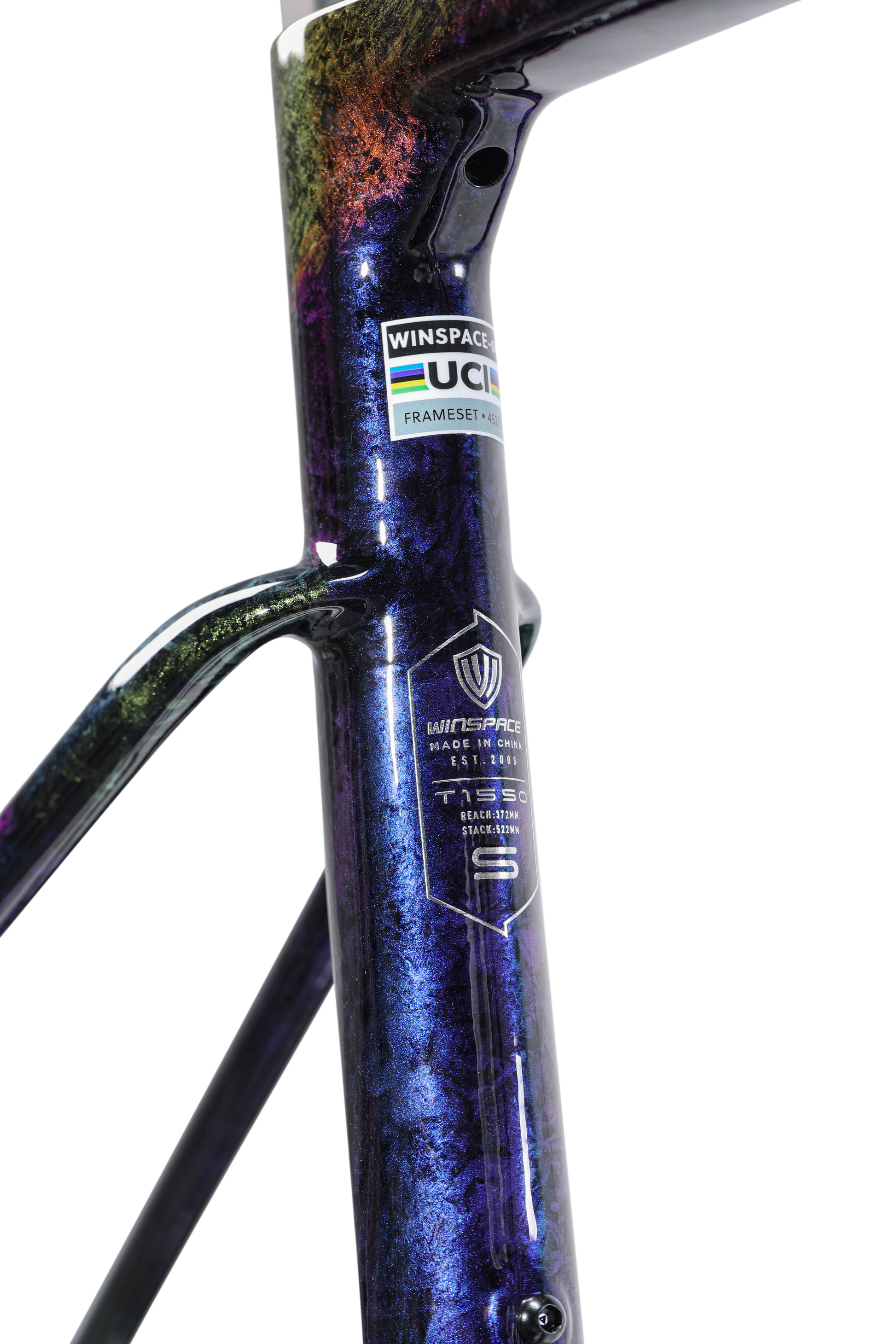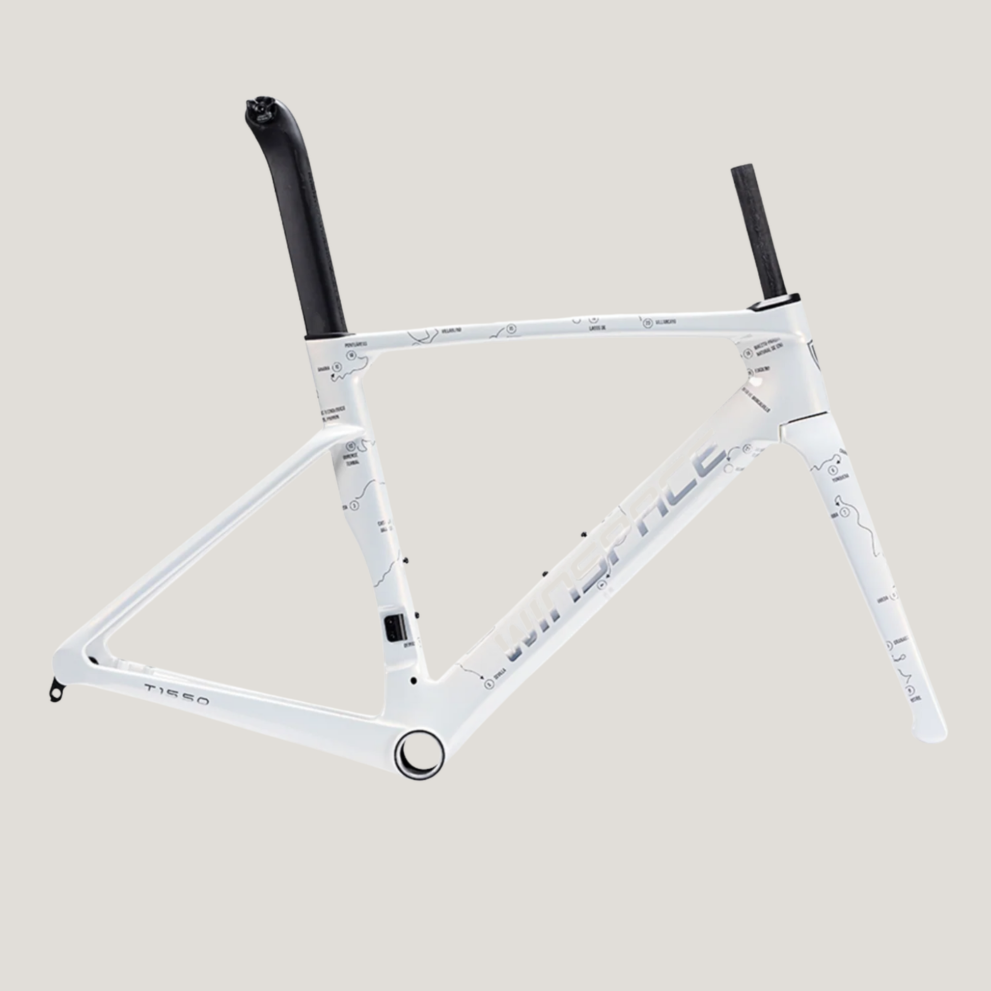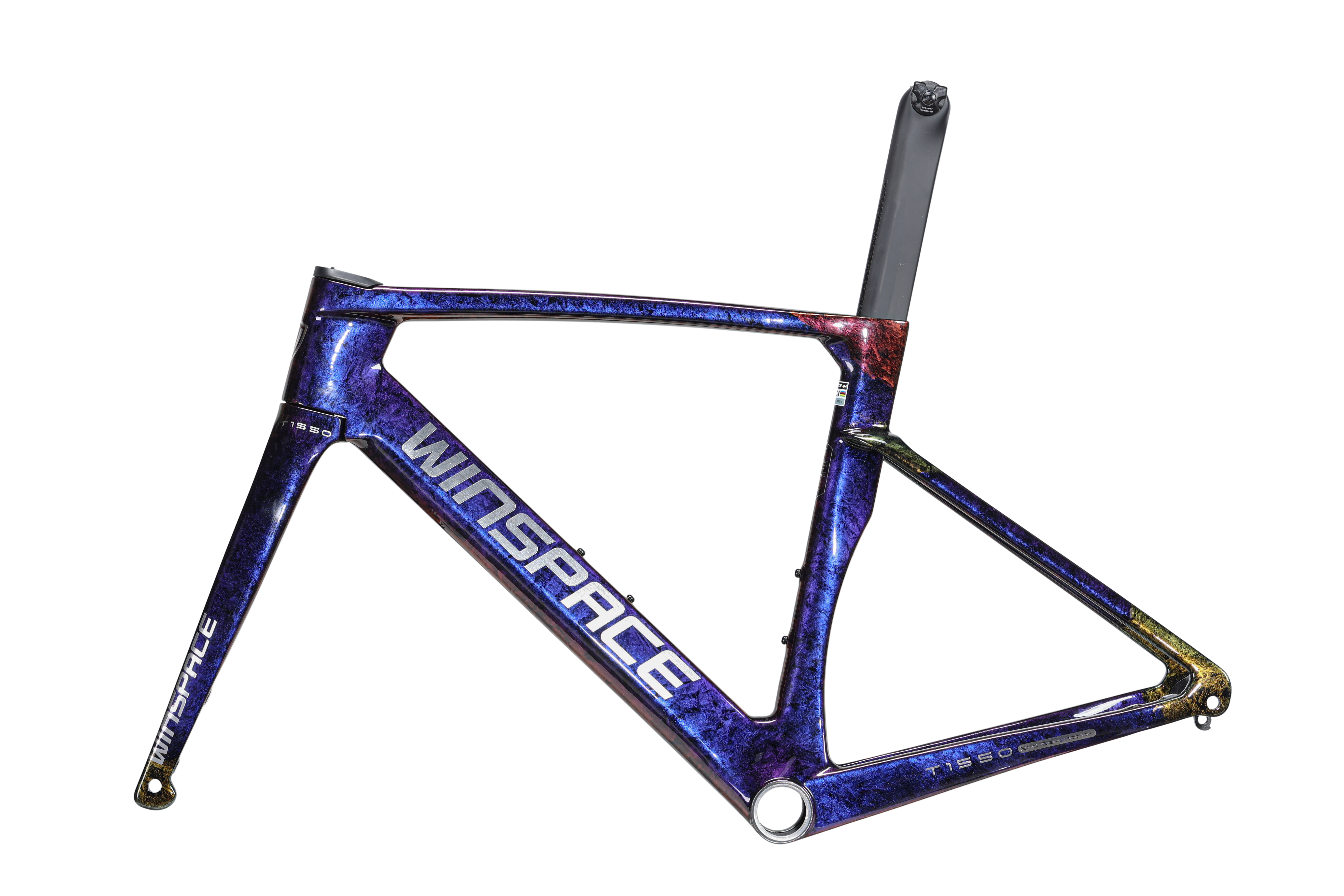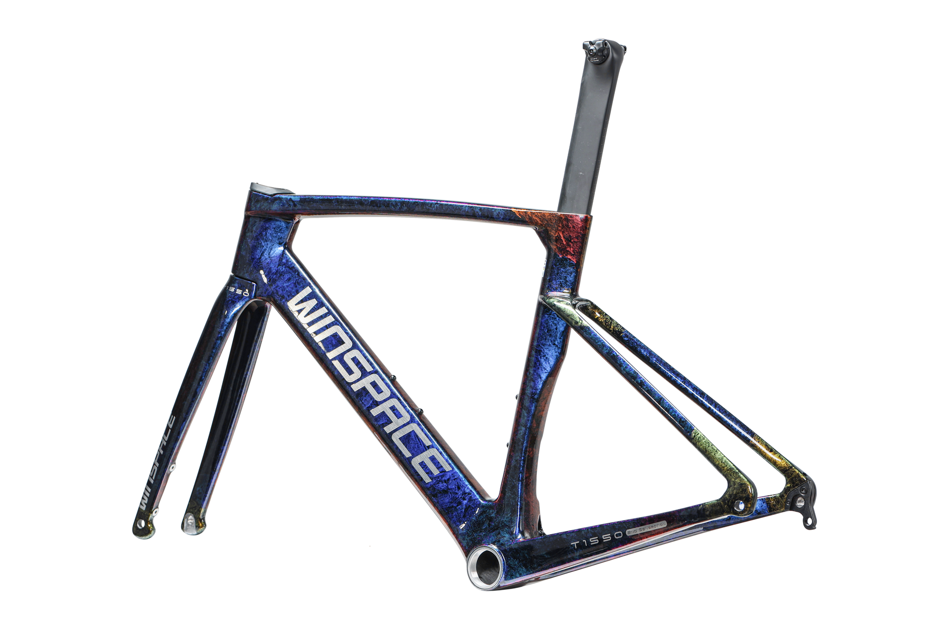 The Winspace T1550 2nd Gen. frameset features a T1000 + T800 carbon fiber One-Piece molding process, which ensures higher-quality stability and lightweight construction. This process also results in a seamless frame, allowing for more direct force transmission and a sturdier frame structure.