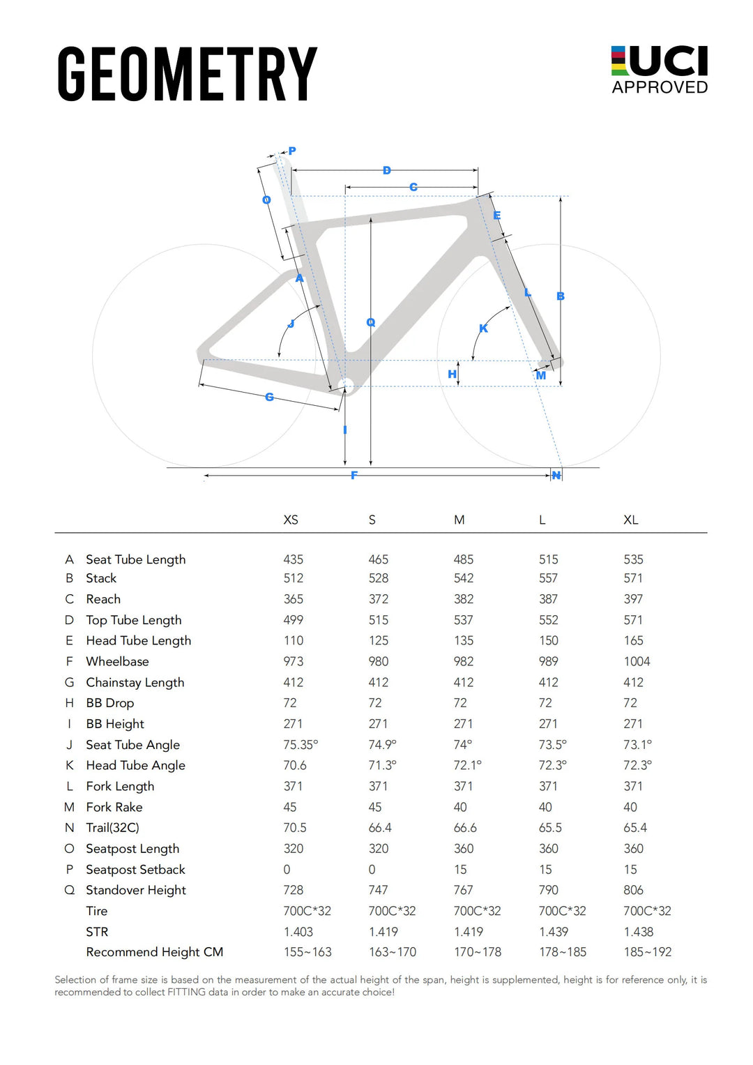 There is no perfect sizing guide, but if you know your bike fit, choosing the right size wil be a breeze! This geometry chart allows you to go beyond the normal Size Letters and delve deeper into your own FIT